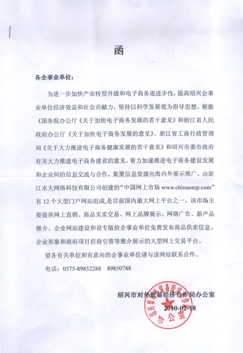 單位全稱:紹興市對外貿(mào)易經(jīng)濟(jì)合作局